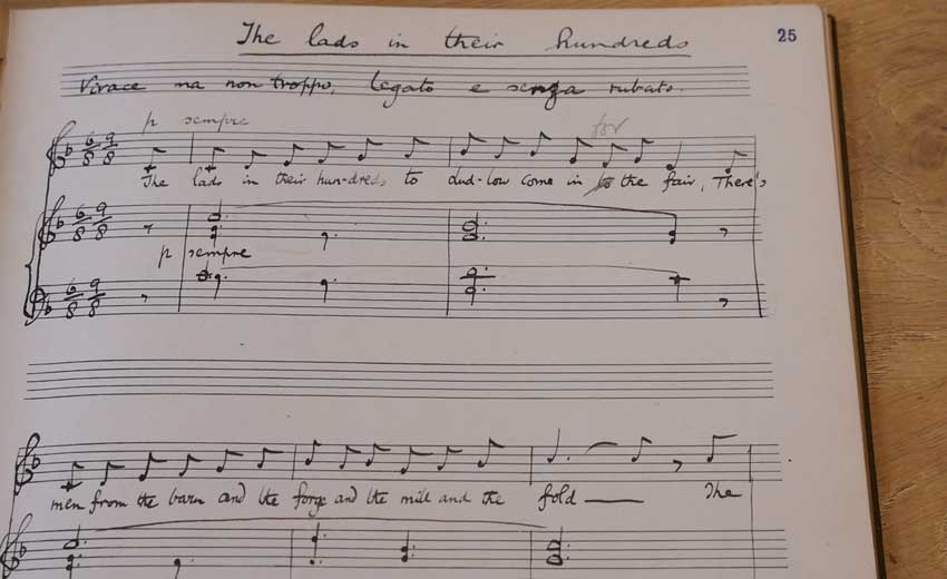 The filmmaker gained exclusive access to the complete Butterworth folk song manuscripts and related audio-visual materials held in the Vaughan Williams Memorial Library (VWML), including Cecil Sharp's stunning pre-World War One photographic portraits of English folk singers.